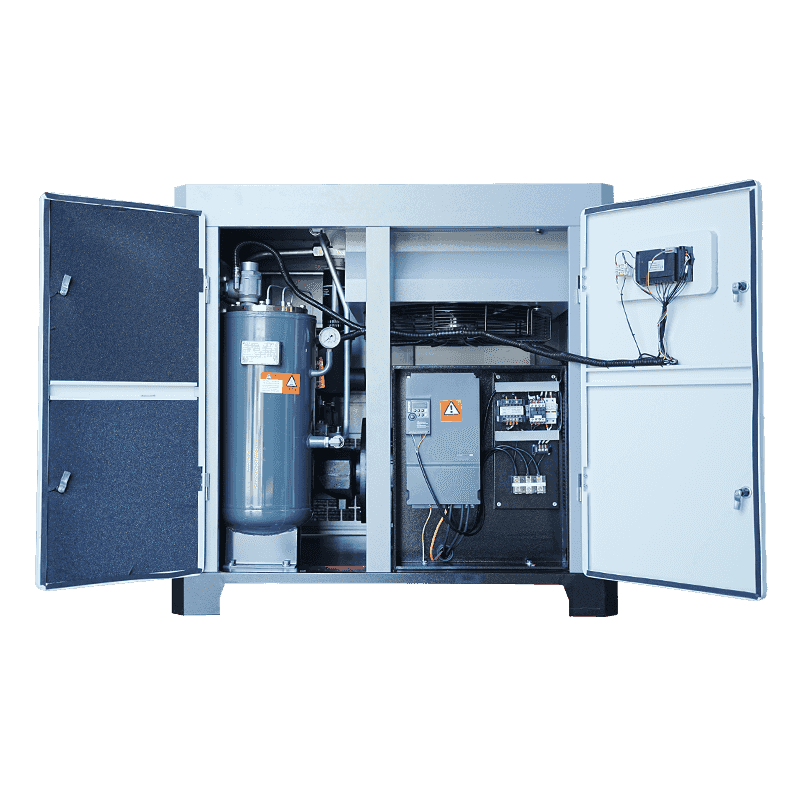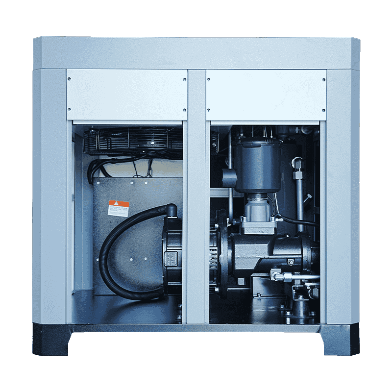 Kombinationen af dobbeltskruekompression, mikrooliesmøring og permanent magnet synkronmotorteknologi gør det muligt for 50HP mikroolie-dobbeltskruekompressoren at opretholde en energieffektiv profil under langvarig drift. Dens systemdesign fokuserer på stabilitet, reduceret mekanisk slid og optimeret luftstrømsstyring. Mens de faktiske energibesparelser varierer afhængigt af driftsmiljøet og arbejdsbelastningen, giver kompressorens struktur industrien mulighed for at styre deres trykluftproduktion med større effektivitet og forudsigelighed.